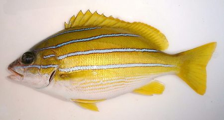写真の魚が白星で、背中に小さな白い点があるのだが、黒星は大きな黒点があるのが特徴。実際には黒星は「クロホシフエダイ」が標準和名なんだけど、宮崎では美味いかさほどでもないかの判断材料でもある。